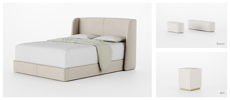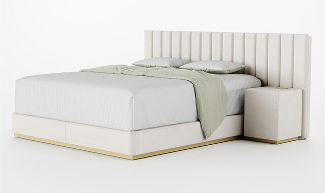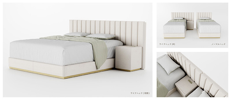 選べる張生地とサイズ、またナイトテーブルなどの備品で、ホテルライクな雰囲気を再現できるラインアップです。大半はシンプルかつ機能的なストレートデザインを基調としています。商品によってはキングサイズまで対応しているため、睡眠スペースにかなりの余裕を持たせることができます。