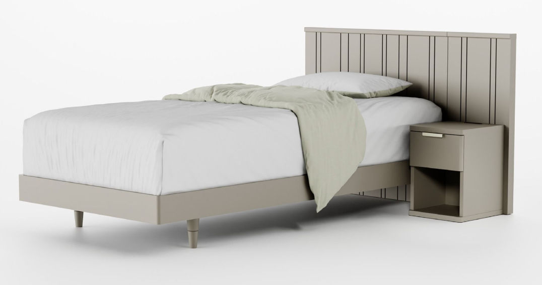 背パネル付きナイトテーブルとの組み合わせ可。