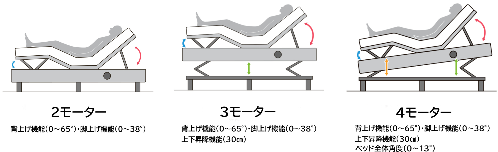 ◎機能:3モーター駆動 背上げ角度0~65度 脚上げ角度0~38度 昇降高さ:0~30㎝(無段階)
