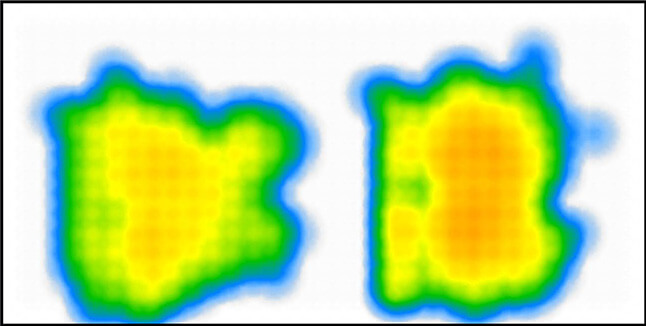 フィット感を表す数値です。硬いマットレスは反応数が少なく、柔らかめは反応数が多くなります。例として、鉄球を床に置いた際、接地面は少ないですが、柔らかいクッションの上に置くと、接地面は多くなります。