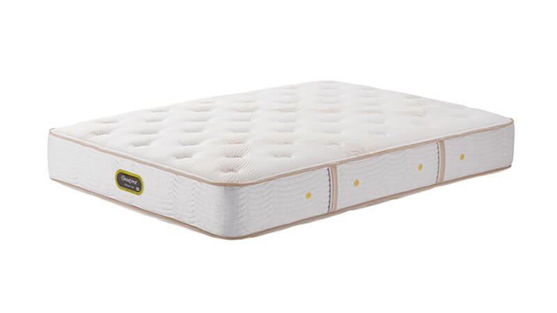 全般柔らかめの詰め物に加え、シーリー独自の連結コイル「RestSUPPORT™コイル」の優れたクッション性が特徴。腰部にはラテックス素材を配し、極端な腰部の落ち込みを防ぐとともに、肩部には低反発フォームを採用することで、横寝の際に肩の圧迫感を抑えられます。極めて上質な心地良さを表現しています。