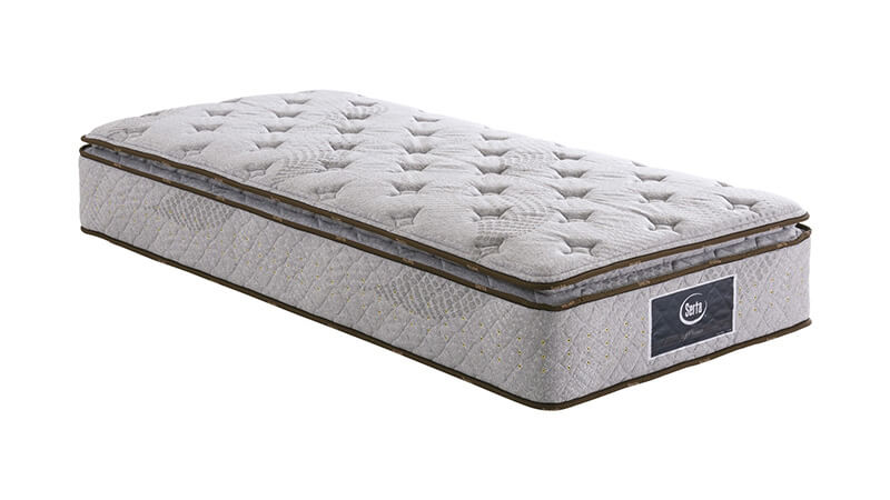 「セレクションシリーズ」のゴールデンバリュー。6.5インチ丈の安定感のあるポケットコイルを採用。詰め物はプレミアムシリーズに比べると薄めで、ふわふわ感を抑えています。ストレッチ効果のある「ストレッチバックシート」を表面生地の下に配することで、動きやすさ、寝返りのしやすさに定評があります。今回選んだマットレス の中では中間の硬さです。