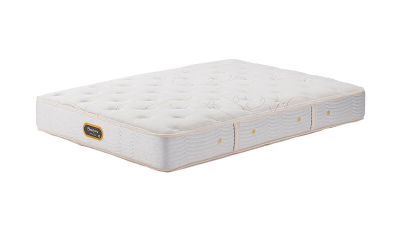 圧縮の強い6.5インチ丈ポケットコイルを採用し、芯はしっかりと身体を支えつつ、表面層は程良いふわふわ感をもたせて快適さを実現しています。全体的に落ち着いた硬さに仕上げた、バランス重視のロングセラーモデルです。