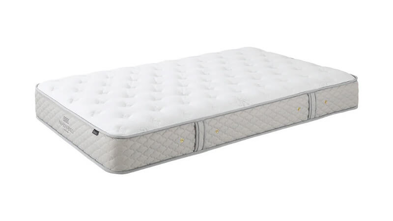 超高密度ポケットコイルの「シルキーポケット 1.4㎜」を採用し、コイルのきめ細やかなフィット感を与えてくれます。詰め物の一部にハードウレタンを採用し、しっかりした硬さを感じる寝心地に仕上がっています。しかしバリバリに硬いわけではなく、上質なしなやかさを感じていただけると思います。3つの中では中ぐらいの硬さです。